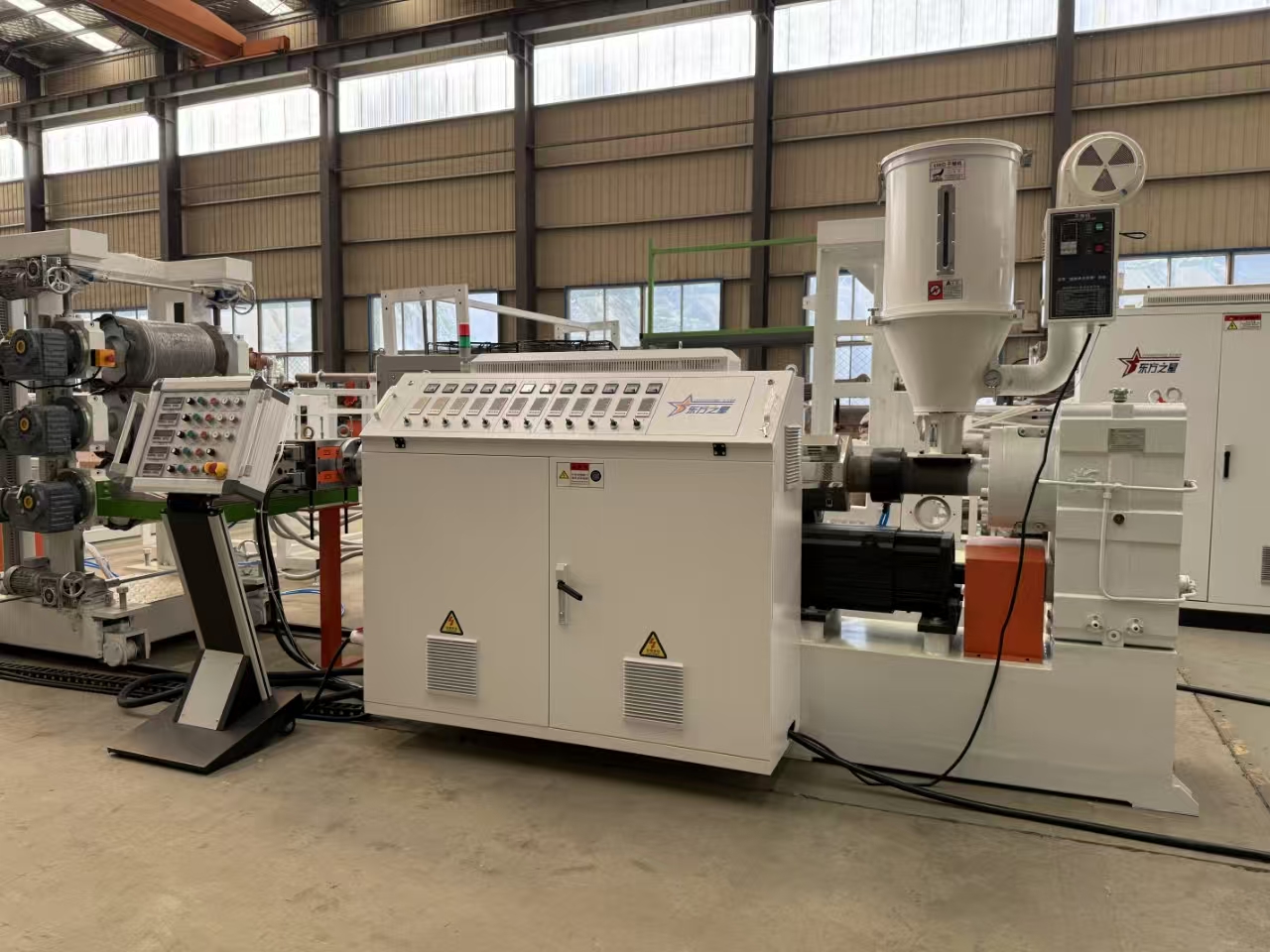 मेसिनले अत्याधुनिक पीएलसी (प्रोग्रामेबल लॉजिक कन्ट्रोलर) प्रणाली समावेश गर्दछ जसले एक्स्ट्रुजन प्रक्रियामा सटीक नियन्त्रणको लागि अनुमति दिन्छ। अपरेटरहरूले सजिलैसँग तापमान, गति, र दबाब जस्ता प्यारामिटरहरू समायोजन गर्न सक्छन् वांछित पाना गुणहरू प्राप्त गर्न। नियन्त्रणको यो स्तरले निरन्तर उत्पादनको गुणस्तर सुनिश्चित गर्छ र सामग्रीको फोहोर घटाउँछ।