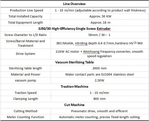 यसका लागि सेटअपबत्ती ट्यूब कभर उत्पादन लाइनकेही प्रमुख उपकरण विवरणहरू वरिपरि केन्द्रहरू। मुटुमा SJ50/30 एकल-स्क्रू एक्स्ट्रुडर बस्छ। यसले 30 देखि 1 लम्बाइ र व्यास अनुपातको साथ 50mm स्क्रू सुविधा दिन्छ। दुबै स्क्रू र ब्यारेल नाइट्राइड 38CrMoAlA स्टिलबाट आउँछन्, जसले सामग्रीहरूलाई पूर्ण रूपमा पग्लन मद्दत गर्छ, चीजहरूलाई समान राख्छ, र PC, PS, र ABS जस्ता कठिन सामानहरूको लागि पनि स्थिर आउटपुट प्रदान गर्दछ।बत्ती ट्यूब कभर उत्पादन लाइनWeichuang फ्रिक्वेन्सी कन्भर्टरसँग 11 kW AC मोटर जोड्छ, त्यसैले गति सटीक नियन्त्रणमा रहन्छ। साथै, स्वचालित भ्याकुम फिडर र डिह्युमिडिफायर ड्रायरले PC र ABS जस्ता कच्चा पदार्थहरूमा नमीको ख्याल राख्छ, पग्लने प्रक्रियाको लागि उच्च गुणस्तरको रहन्छ भन्ने कुरा सुनिश्चित गर्दै। सम्पूर्ण लाइनले सिमेन्स लो-भोल्टेज पार्ट्स र ओमरोन तापमान नियन्त्रकहरू मार्फत केन्द्रीय नियन्त्रण प्राप्त गर्दछ, जसले सबै चीजहरू विश्वसनीय रूपमा चलिरहेको हुन्छ।