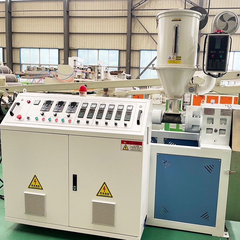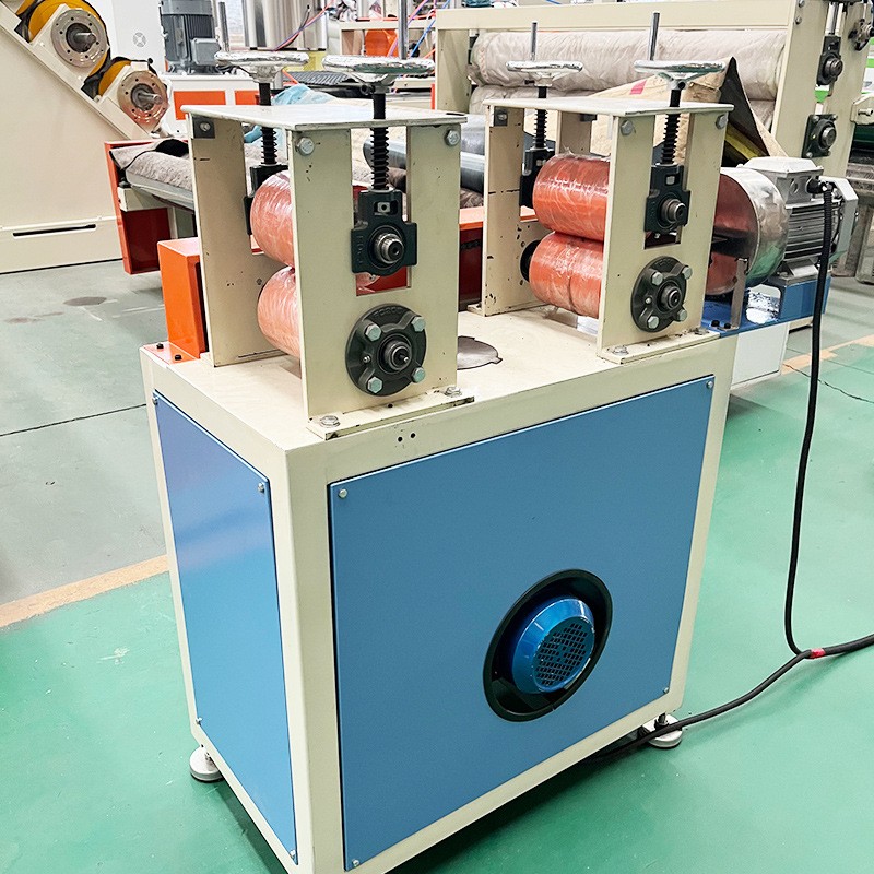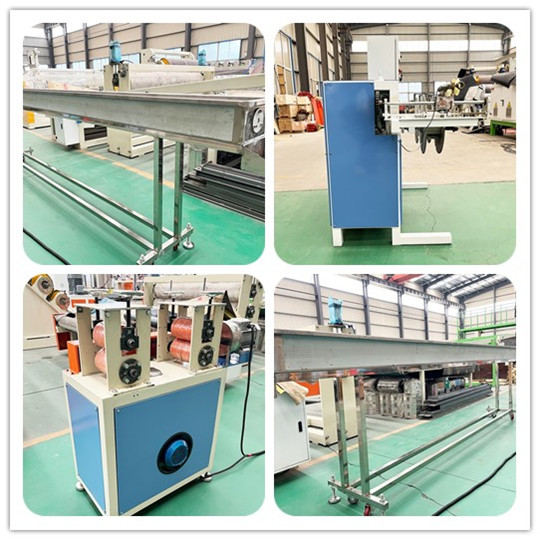 PE ब्याग एज स्ट्रिप एक्सट्रुजन मेसिनमा एकल स्क्रू कम्प्रेसर - मेसिन हेड मोल्ड - भ्याकुम आकार दिने गोदाम - कर्षण ट्र्याक्टर - घुमाउने मेसिन समावेश छ