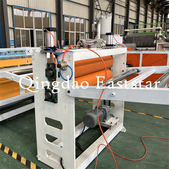 PVC एन्टी-स्लिप म्याट उपकरण सफ्ट शीट मेसिन: उपकरणमा मुख्यतया एकल-स्क्रू एक्स्ट्रुडर, तीन-रोलर क्यालेन्डर, 6-मिटर कूलिंग हुन्छ।