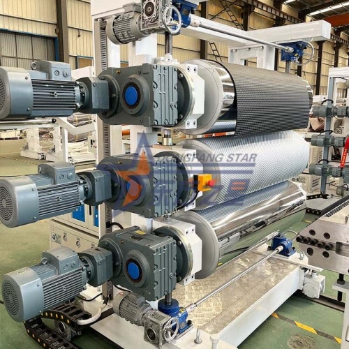 SJ120/33 TPE एन्टि-स्लिप म्याट समर्पित उत्पादन लाइन एक व्यावसायिक उत्पादन उपकरण हो जुन थर्मोप्लास्टिक इलास्टोमर (TPE) चटाई सामग्रीहरूको लागि विशेष रूपमा डिजाइन गरिएको हो। यसले 33:1 पक्ष अनुपात उच्च-शक्ति एक्स्ट्रुडर, सटीक कोट ह्याङ्गर-टाइप मोल्डहरू, मिरर थ्री-रोल क्यालेन्डरिङ प्रणाली, र पूर्ण रूपमा स्वचालित काटन उपकरण अपनाउँछ। यसले कुशलतापूर्वक 600-1000mm को चौडाइ र 1-6mm को मोटाईको साथ उच्च-गुणस्तरको TPE एन्टि-स्लिप म्याटहरू उत्पादन गर्न सक्छ। उपकरण TPE सामग्री विशेषताहरु को लागी अनुकूलित छ, सटीक तापमान नियन्त्रण, सरल सञ्चालन, र द्रुत उत्पादन परिवर्तन को लागी समर्थन संग। यो विशेष गरी अटोमोटिभ फ्लोर म्याट, होम एन्टी-स्लिप म्याट, र व्यावसायिक चटाई सामग्रीको ठूलो मात्रामा उत्पादनको लागि उपयुक्त छ। लगानीमा छोटो प्रतिफल र स्थिर उत्पादन गुणस्तरको साथ, यो TPE म्याटिङ बजारमा प्रवेश गर्नको लागि एक आदर्श विकल्प हो।