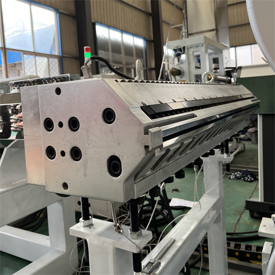 सफ्ट पीभीसी पाना एक्स्ट्रुडर मेसिन: उपकरणमा मुख्यतया १२० एकल स्क्रू एक्स्ट्रुडर, तीन-रोलर क्यालेन्डर, कूलिंग कोष्ठक, रबर रोलर ट्र्याक्सन मेसिन, कपाल काट्ने मेसिन र एक समावेश हुन्छ।