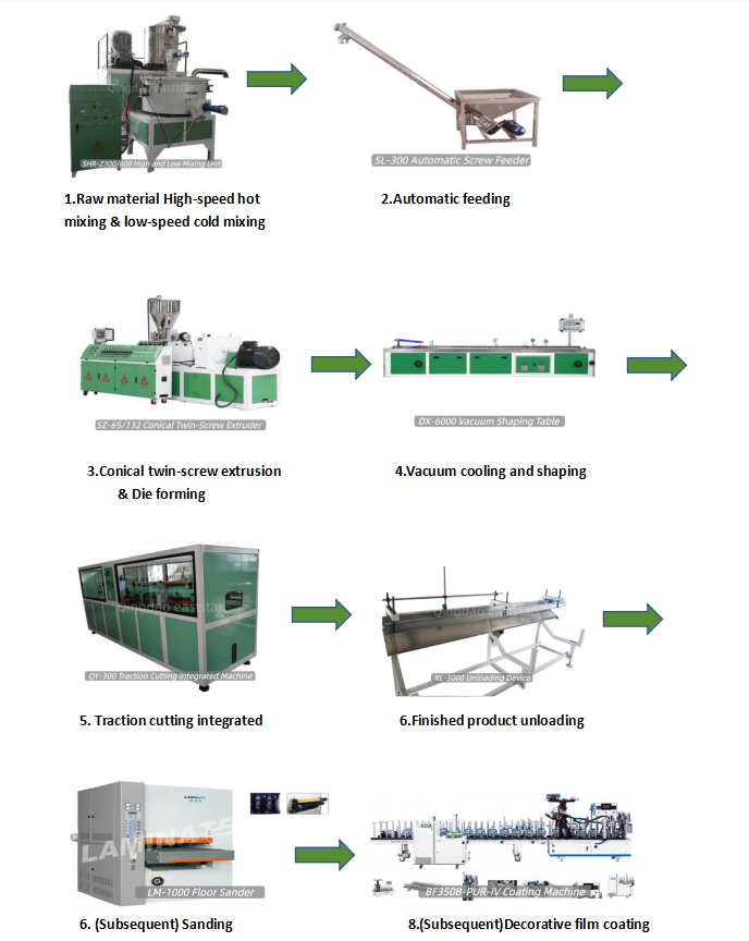 एक-स्टप समाधान:हामी मुख्य एक्स्ट्रुजन लाइन मात्र प्रदान गर्दैनौं, तर उच्च दक्षता उच्च र कम मिश्रण एकाइहरू, सटीक स्यान्डरहरू र उच्च-कन्फिगरेसन PUR कोटिंग मेसिनहरू पनि प्रदान गर्दछौं, जसले ग्राहकहरूलाई कच्चा मालदेखि समाप्त फ्लोरिंगसम्म एक-स्टप टर्नकी परियोजना प्रदान गर्दछ।